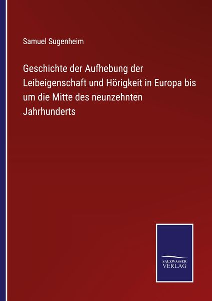 Geschichte der Aufhebung der Leibeigenschaft und Hörigkeit in Europa bis um die Mitte des neunzehnten Jahrhunderts, Taschenbuch von Samuel Sugenheim,
