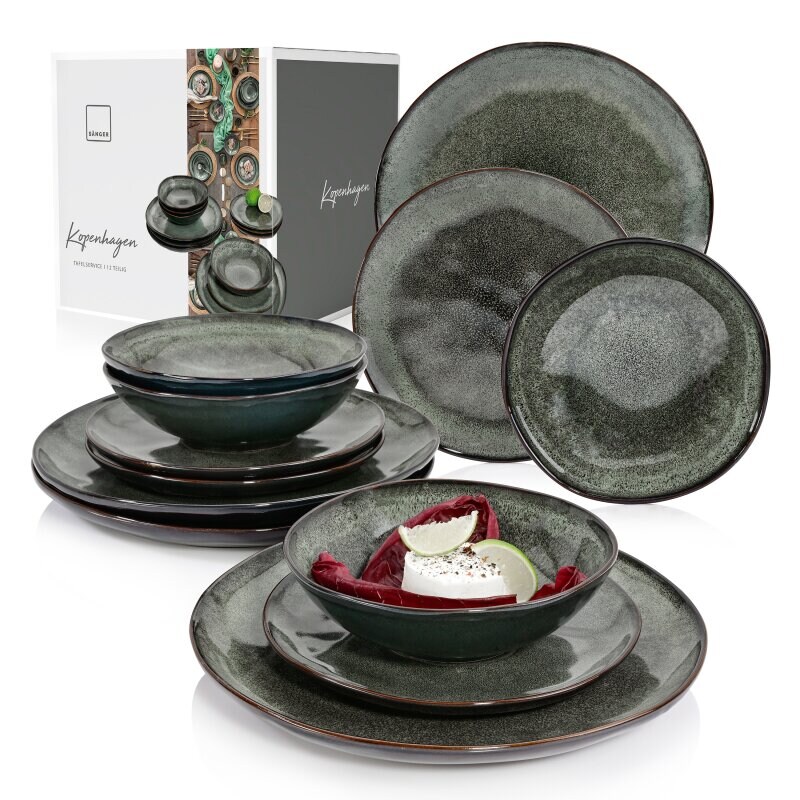vancasso Tafelservice, 12-tlg Steingut Kombiservice, Geschirrset mit Tellerset, Schale für 4 Personen, Green