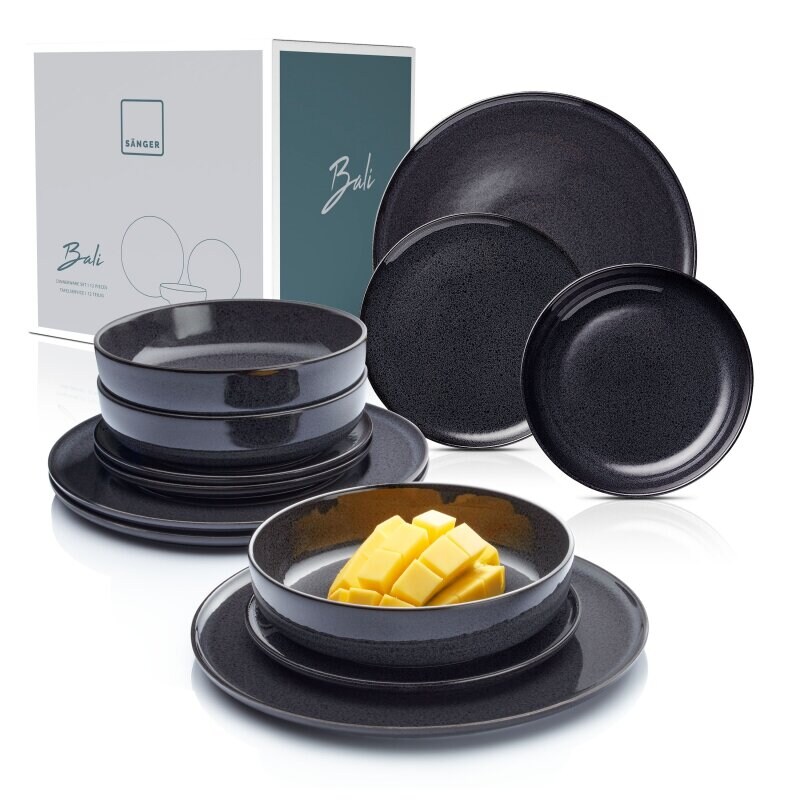 SÄNGER Steingut Geschirrset Bali, Tafelservice 12 teilig für 4 Personen