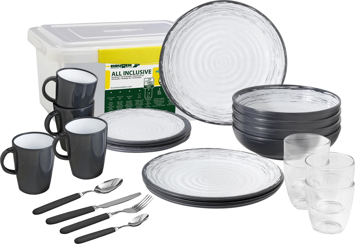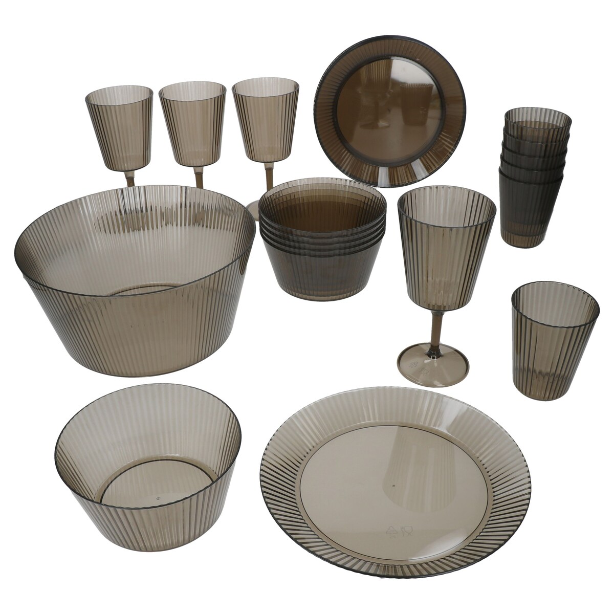 23tlg ToGo Camping Geschirrset grau Kunststoff Teller Gläser Schalen Wohnmobil
