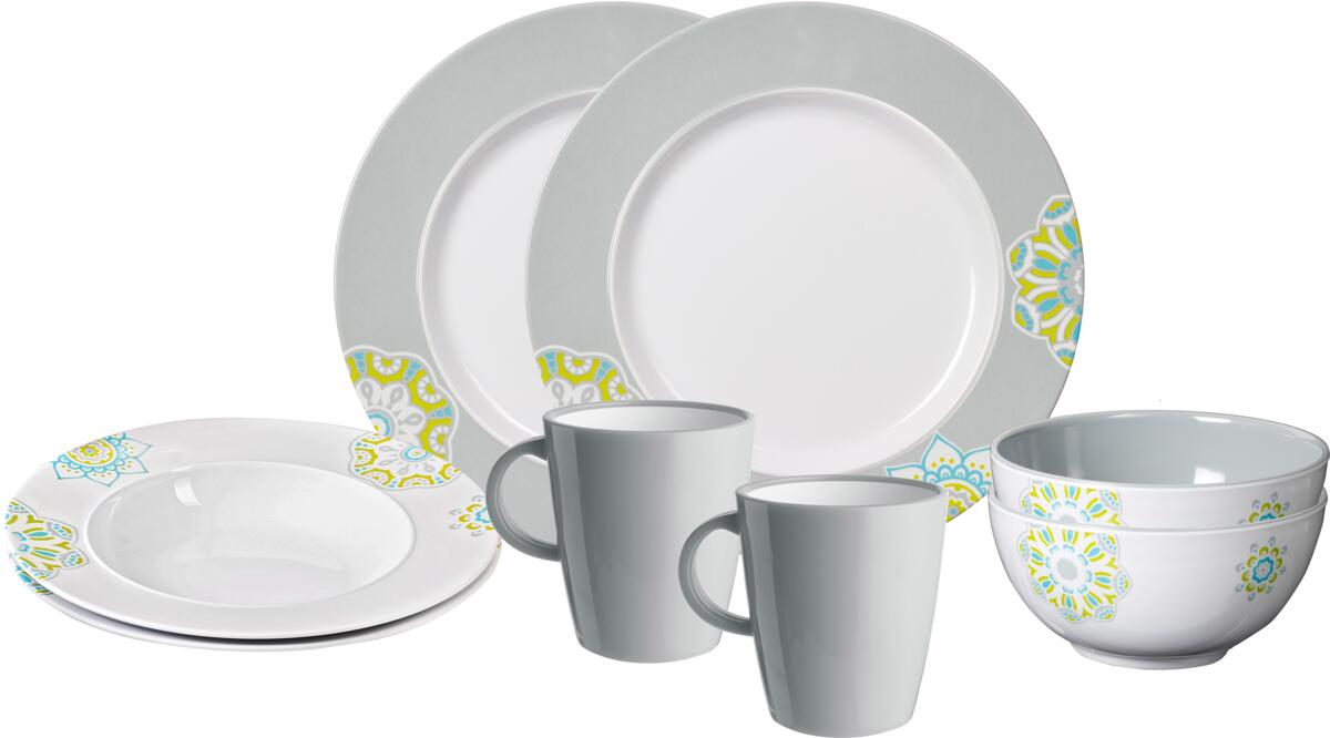 16-teiliges Melamin Geschirrset Camp4 Burano Kombiservice für Camping Outdoor