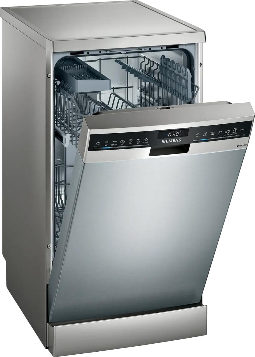 Siemens SR23HI48KE Stand-Geschirrspüler 45cm breit iQ Silence Drive AquaStop Tastensperre 9 Maßgedecke silber