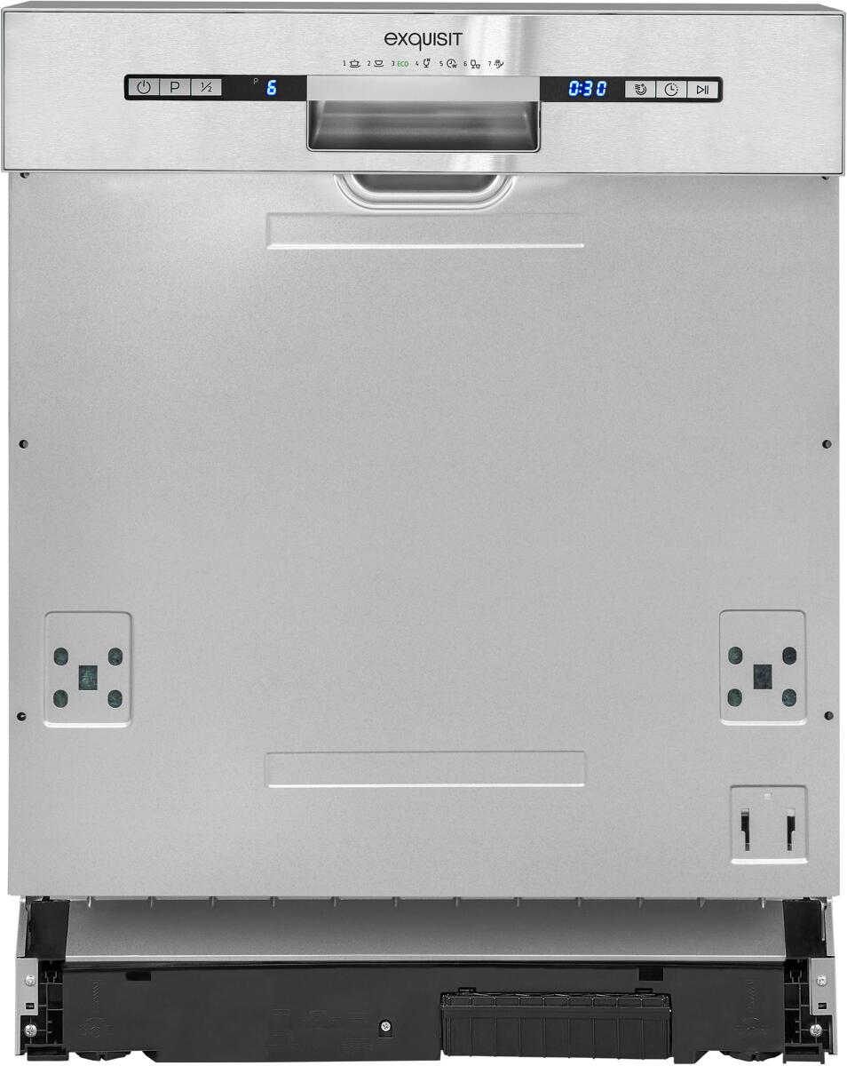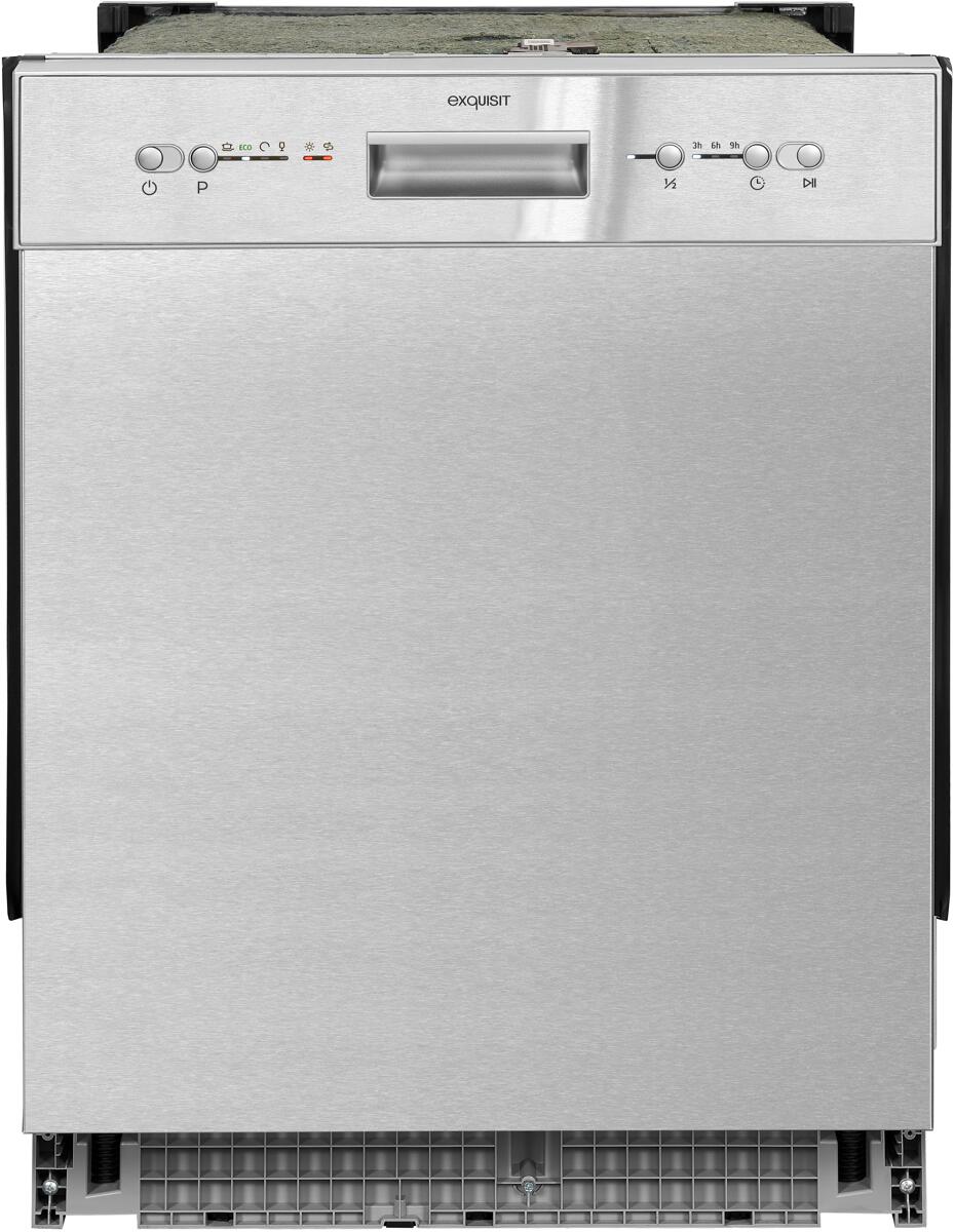 Exquisit EGSP6312-EB-030E Teilintegrierter Geschirrspüler, 60 cm breit, 12 Maßgedecke, AquaStop, Kindersicherung, inox