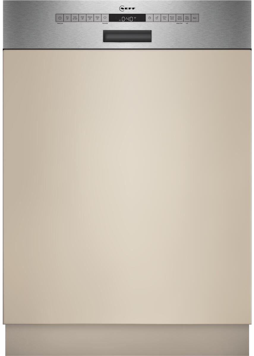Neff S147ZCS35E N70 Teilintegrierter Geschirrspüler, 60 cm breit, 14 Maßgedecke, EasyClean, Zeolith-Trocknen, AquaStop, edelstahl