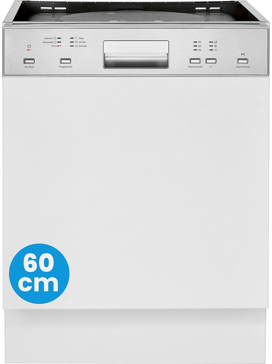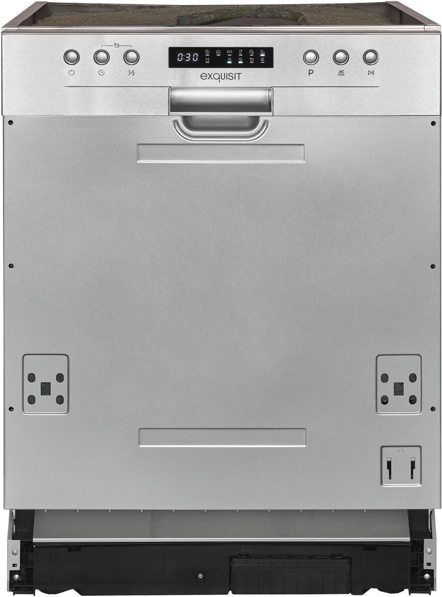 Exquisit EGSP6112-EF-030E Teilintegrierter Geschirrspüler, 60 cm breit, 12 Maßgedecke, 4 Programme, Wasserenthärter, Edelstahl