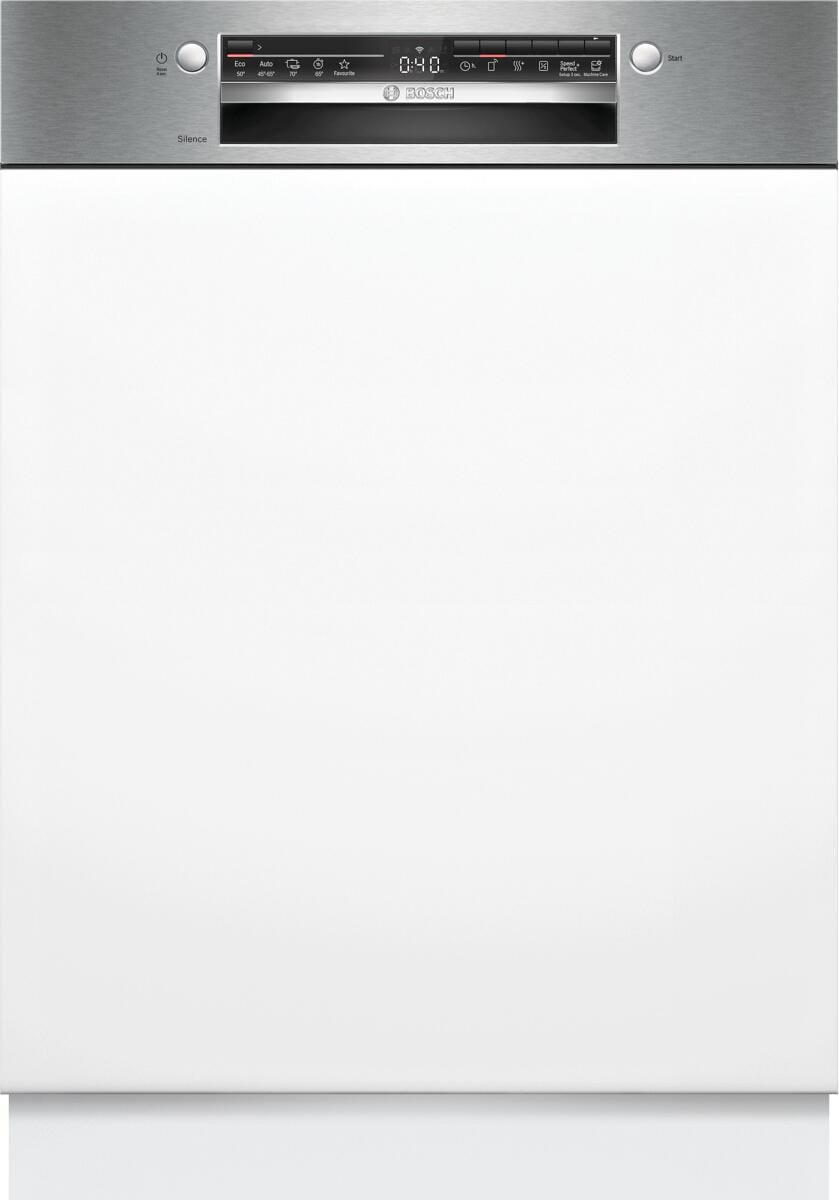 Bosch SMI4HTS14E Serie 4 Teilintegrierter Geschirrspüler, 60 cm breit, 13 Maßgedecke, AquaStop, 6 Programme, Kindersicherung, WLAN, Gebürsteter Stahl