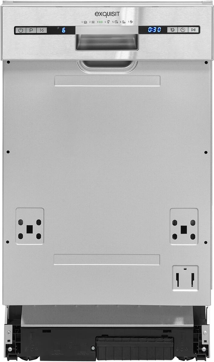 Exquisit EGSP1009-EB-030E Teilintegrierter Geschirrspüler, 45 cm breit, 9 Maßgedecke, ECO, Besteckkorb, LED Display, Edelstahl