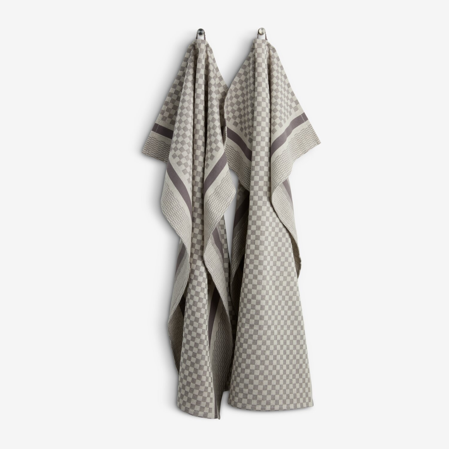 KRACHT - Geschirrtuch / Tea Towel 2er Set - Halbleinen, Streifen - Karo, grau