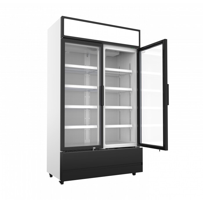 Kühlschrank BONGO | 2x Glastür & Display | 670 Liter, HxBxT 197,3x112x61cm | +1/+10°C | Grau, Front Schwarz | + CHEFGASTRO Geschirrtuch