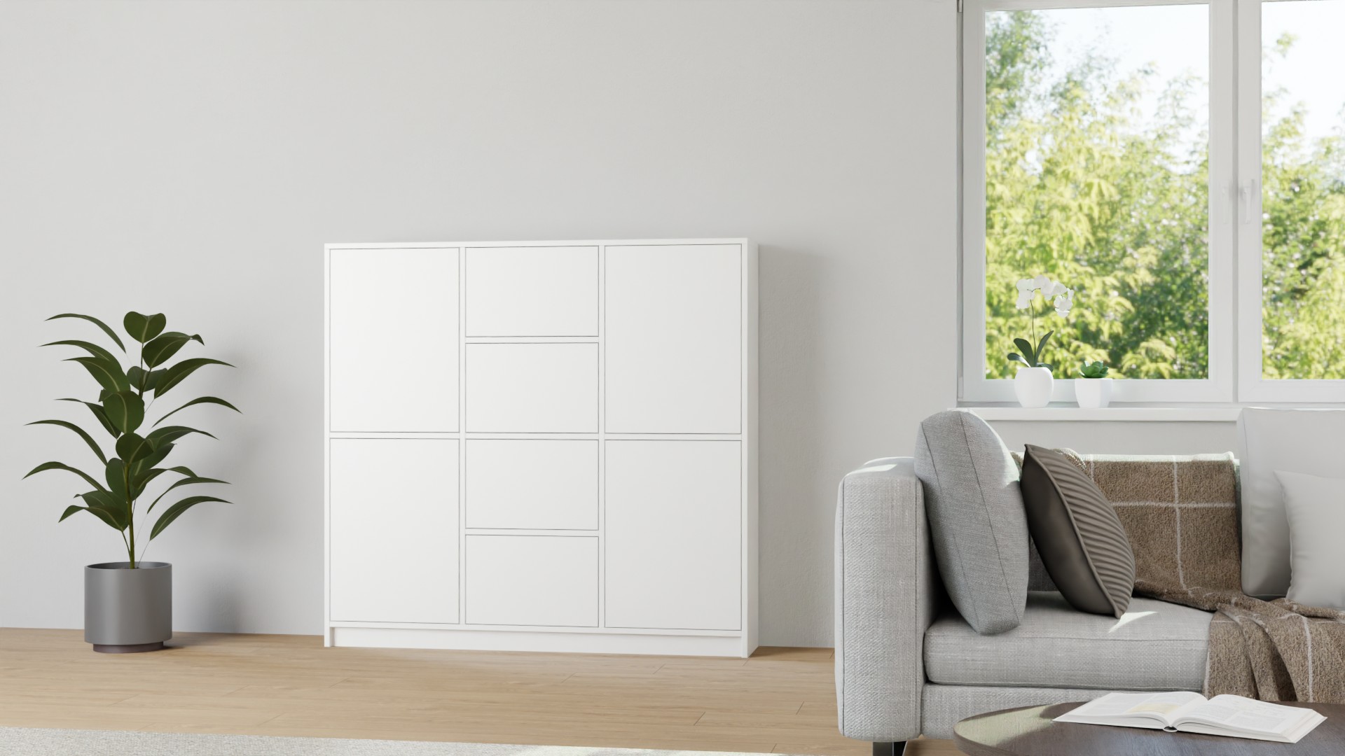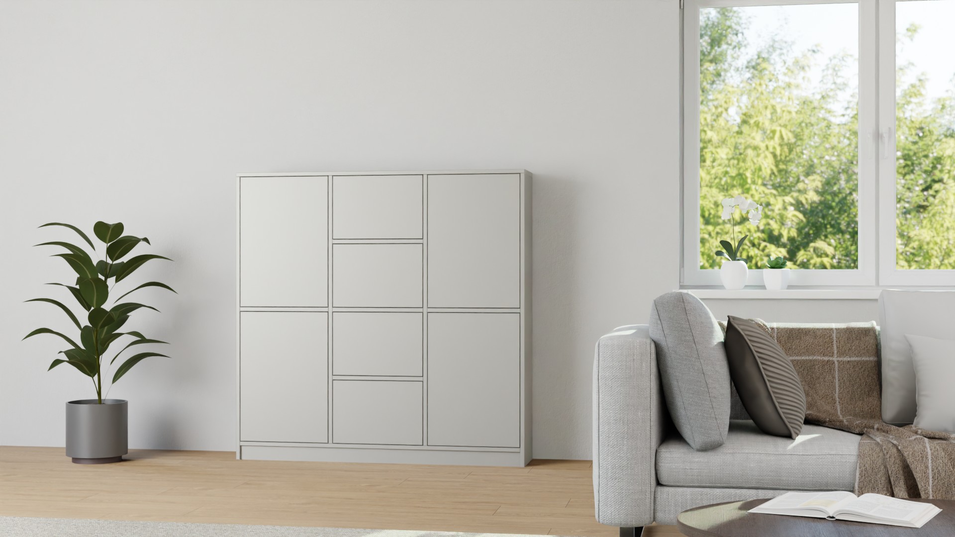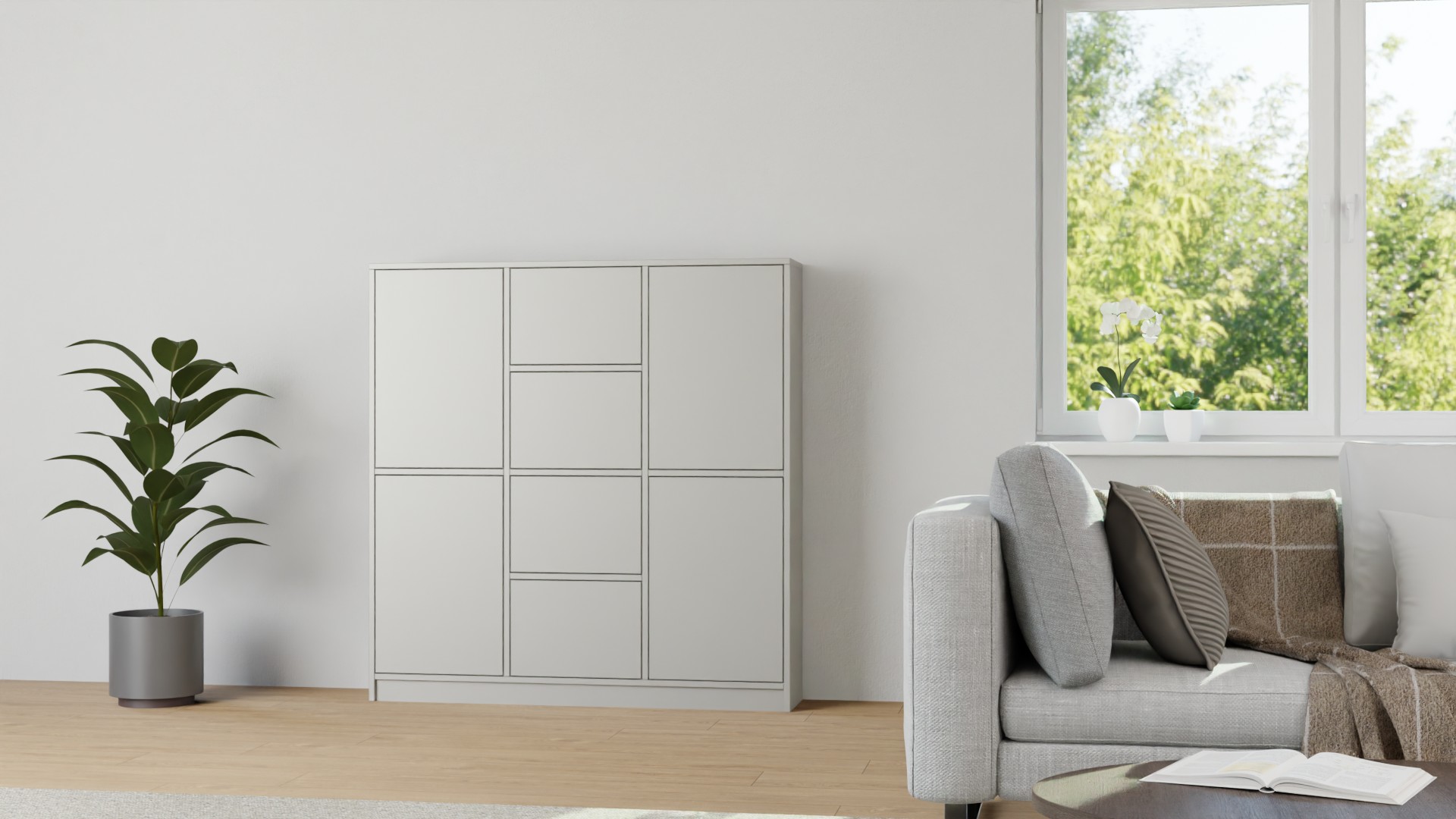 Schranksystem Modul+ in Weiß, offen oder geschlossen, individuell montierbare Aufbewahrung als Regal oder Schrankset, Lowboard oder wandhängendes...
