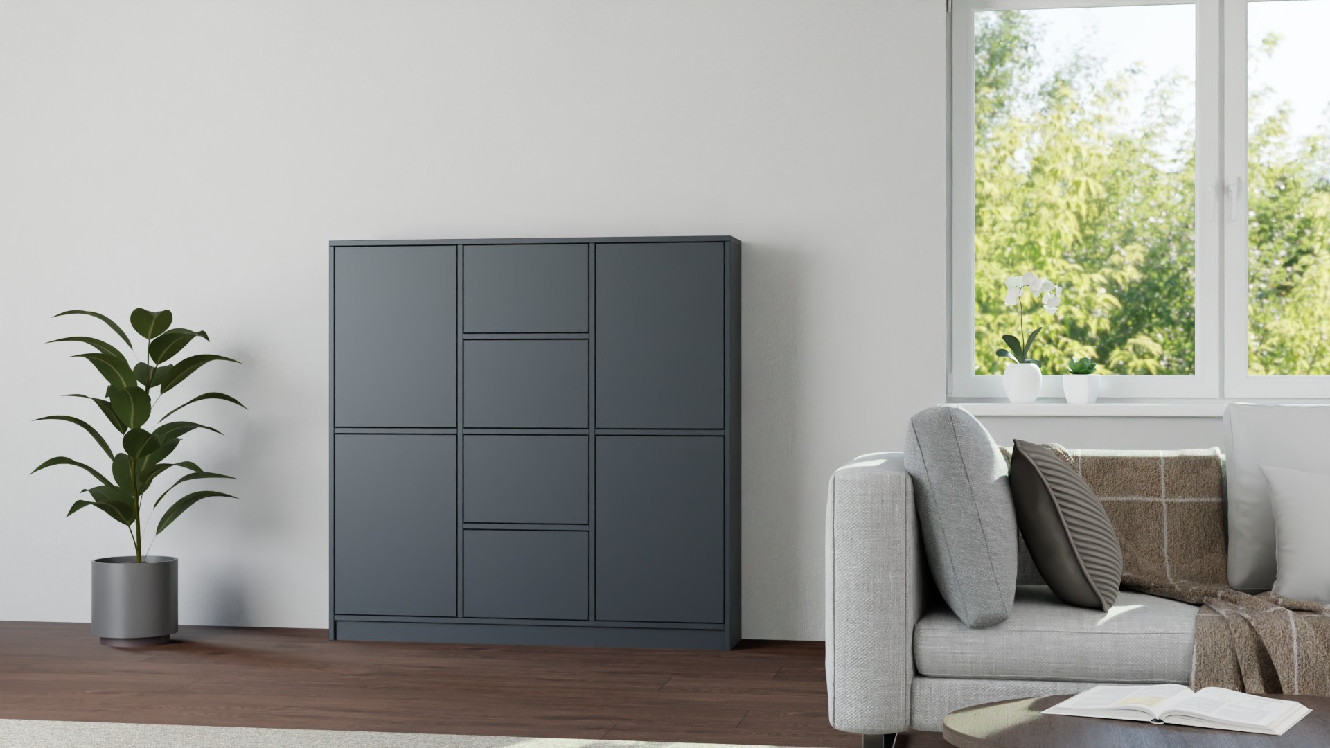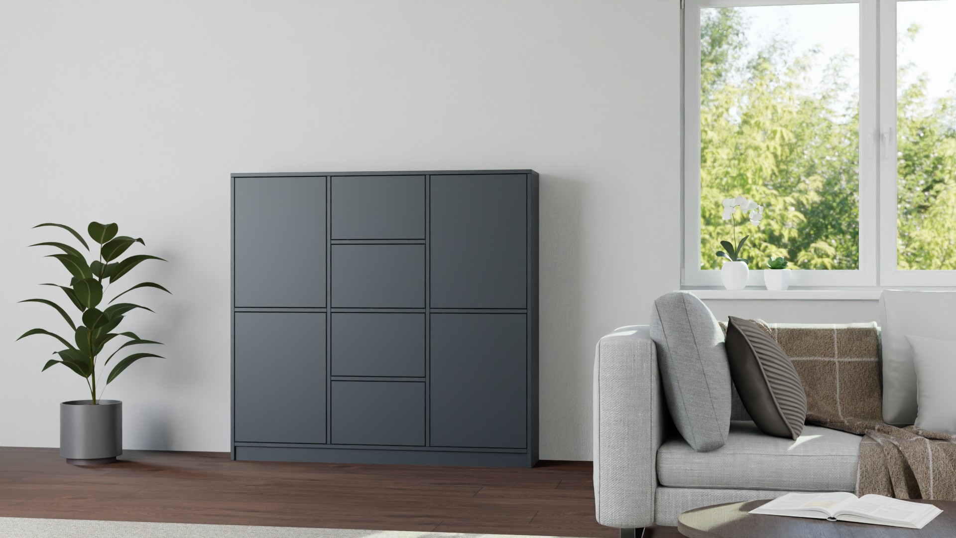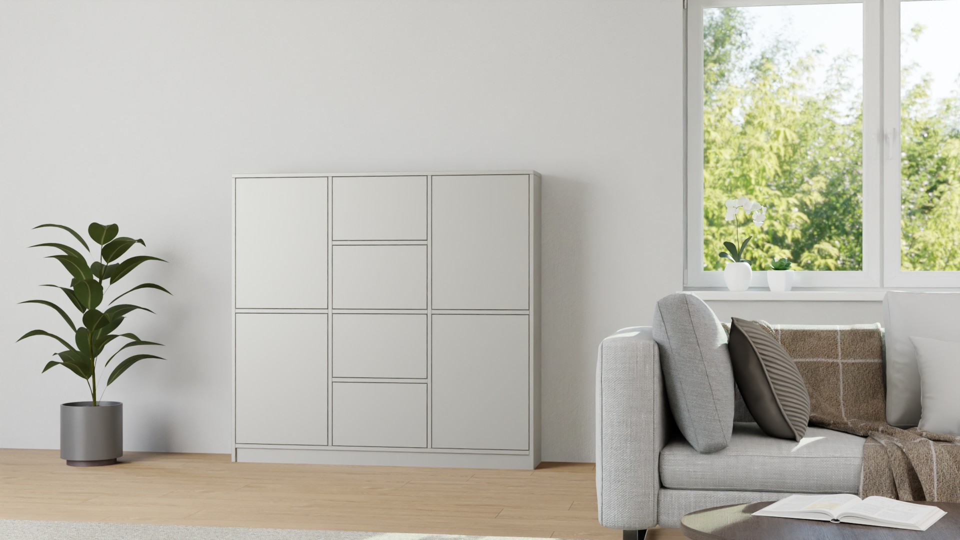 Schranksystem Modul+ in Weiß, offen oder geschlossen, individuell montierbare Aufbewahrung als Regal oder Schrankset, Lowboard oder wandhängendes...