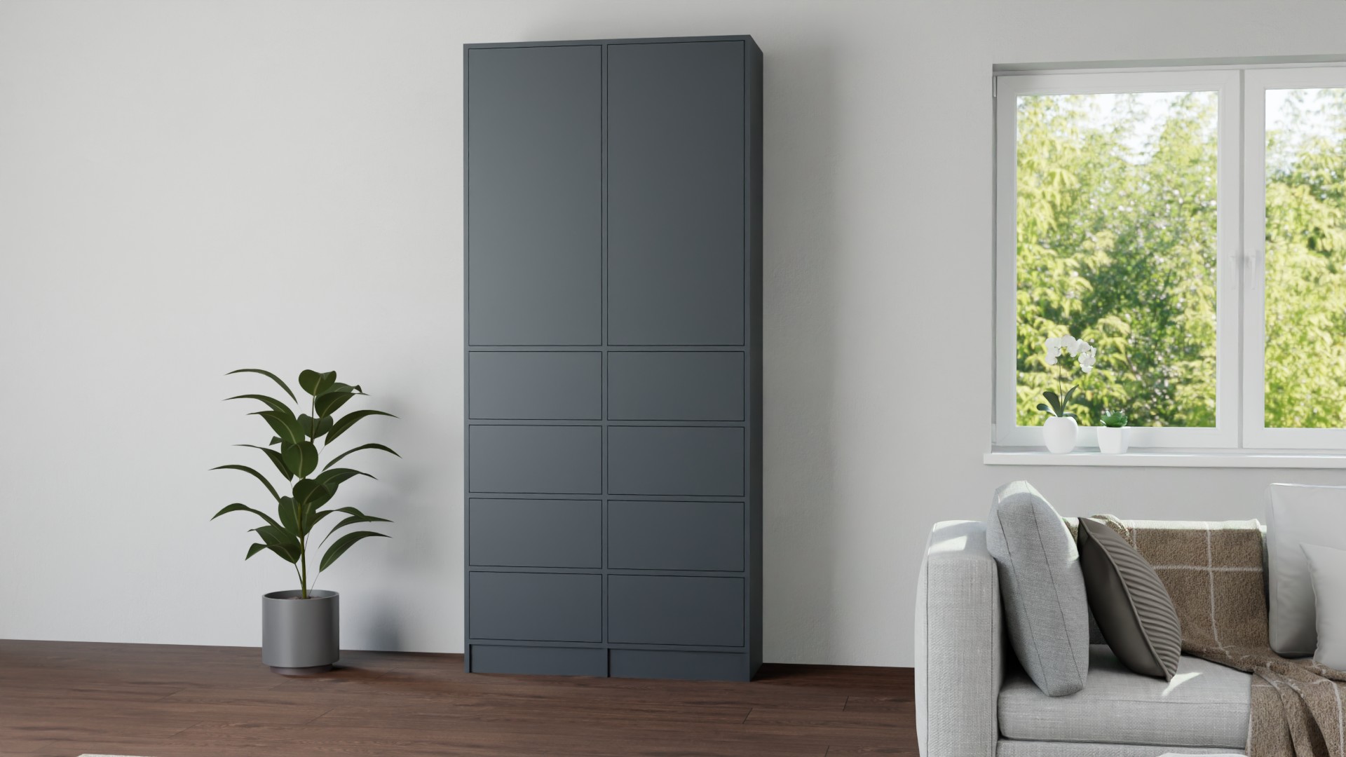 Oliv 2D geschlossenes Regal mit 8 Einlegeböden und 2 Türen | Anthrazit - Artisan Oak | 180x74x35 cm