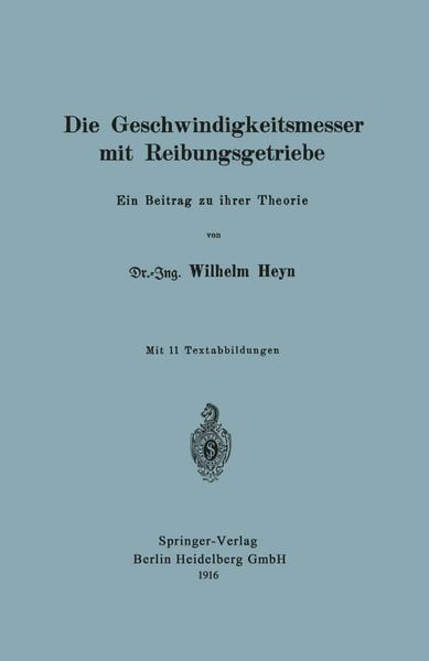 Die Geschwindigkeitsmesser mit Reibungsgetriebe, Taschenbuch von Wilhelm Heyn, Springer Berlin, 9783662324028