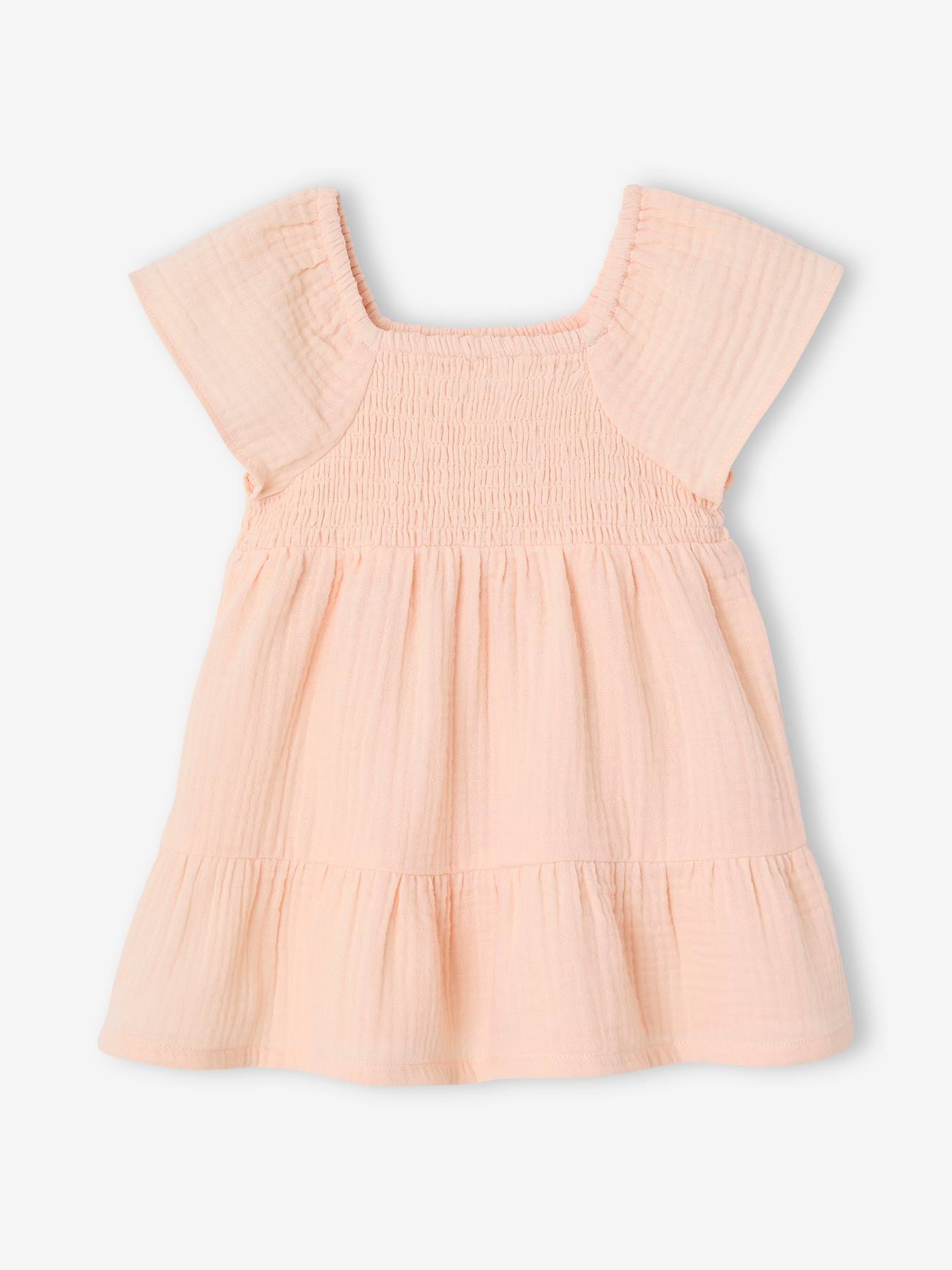 Gesmoktes Baby Kleid aus Musselin rosa aprikose Gr. 68 von vertbaudet