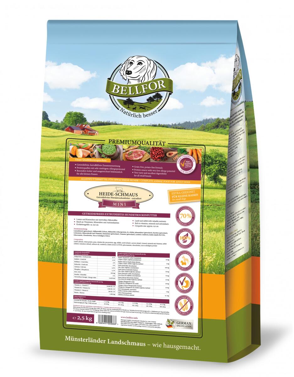 Bellfor Heide-Schmaus Mini | mit Weidelamm & Wildkaninchen | 2,5 kg getreidefreies Hundefutter