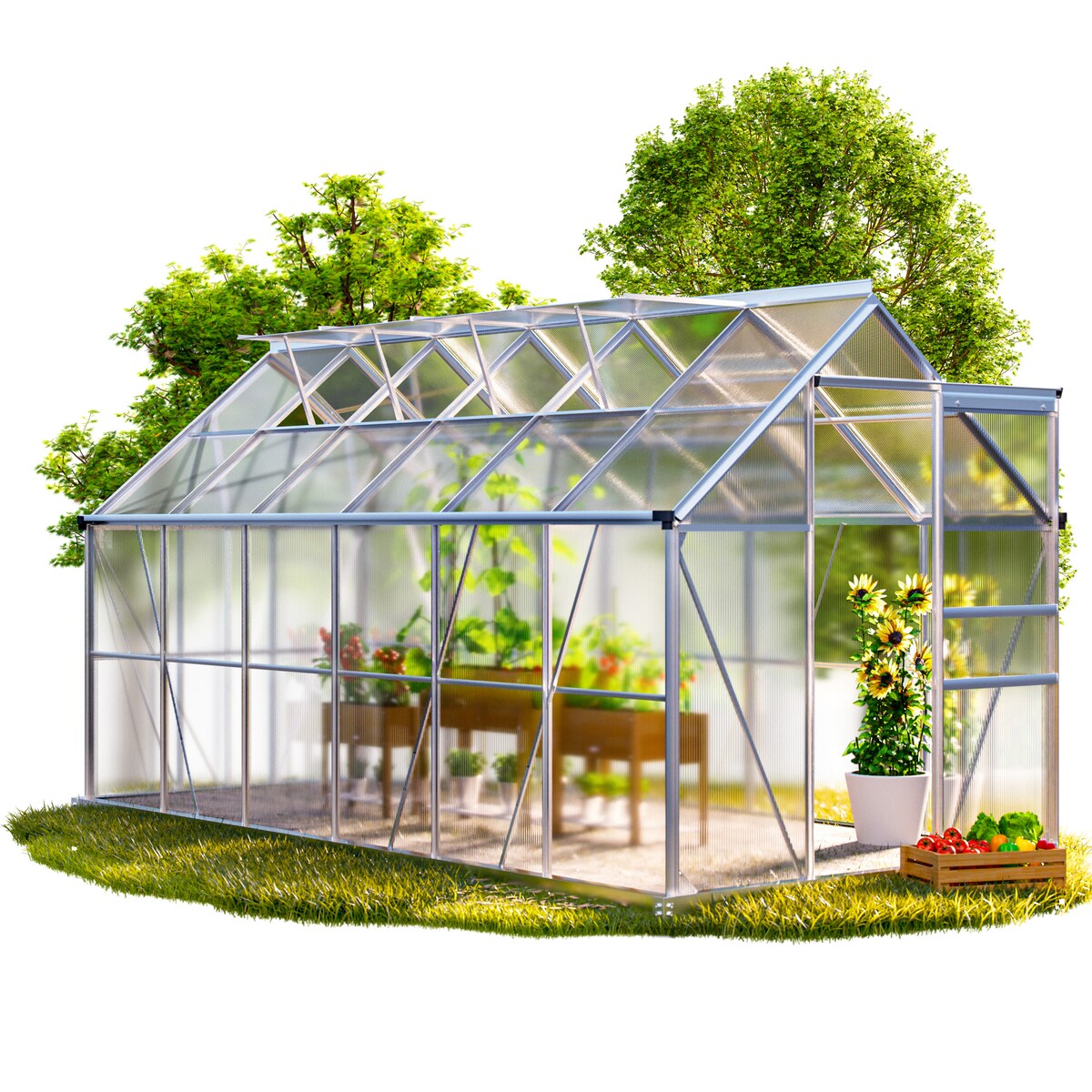 Gewächshaus 2,5×4 m – CLASSIC STANDARD Treibhaus mit 6 mm Polycarbonat, 2 Türen, 2 Fenster & Fundament