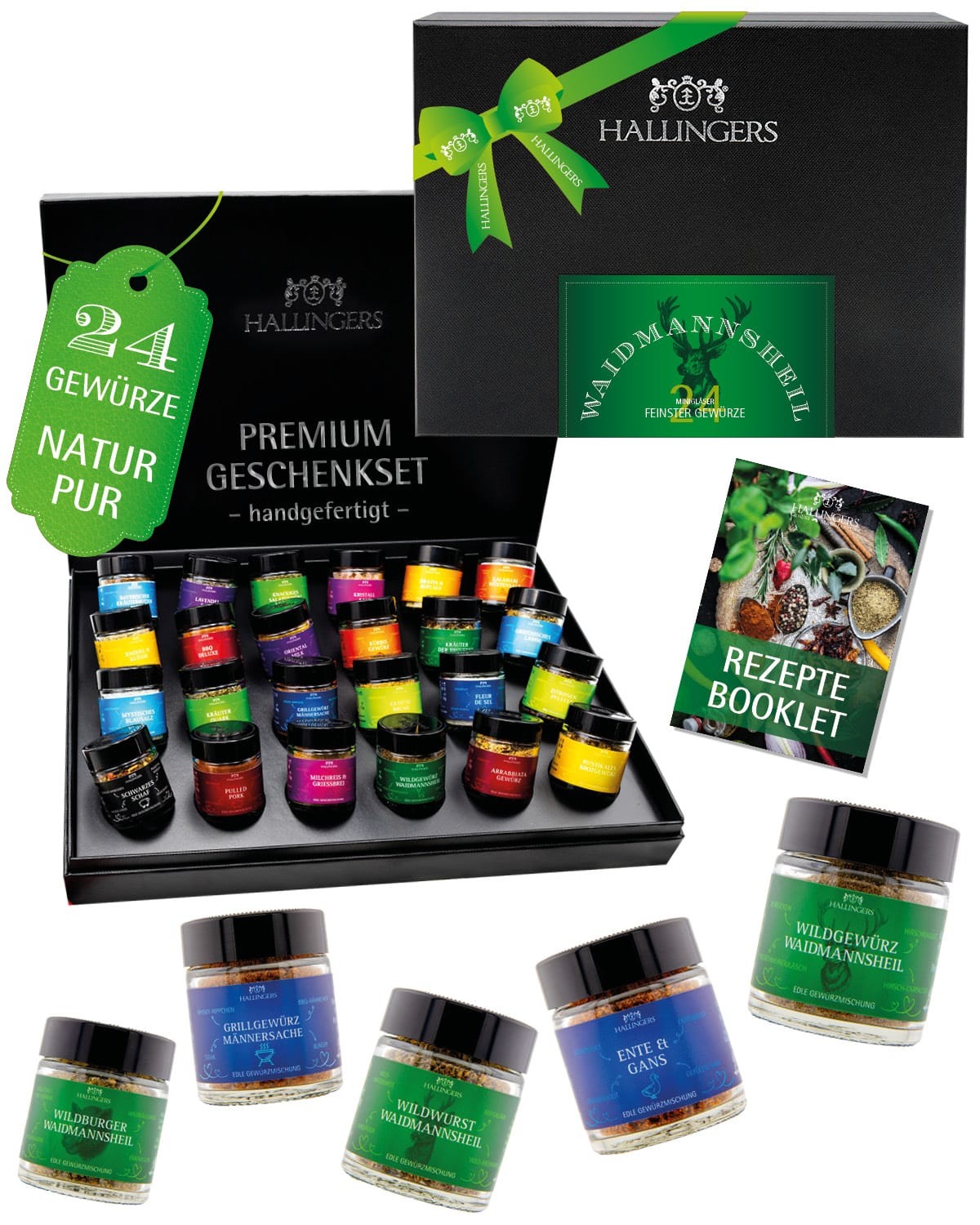 Wild Gewürze Geschenkset – 24 aromatische Wild- & Jagdgewürze aus aller Welt im Glas, edle Box, Gewürze Set "Waidmannsheil XXL", Geschenkidee für Jäge