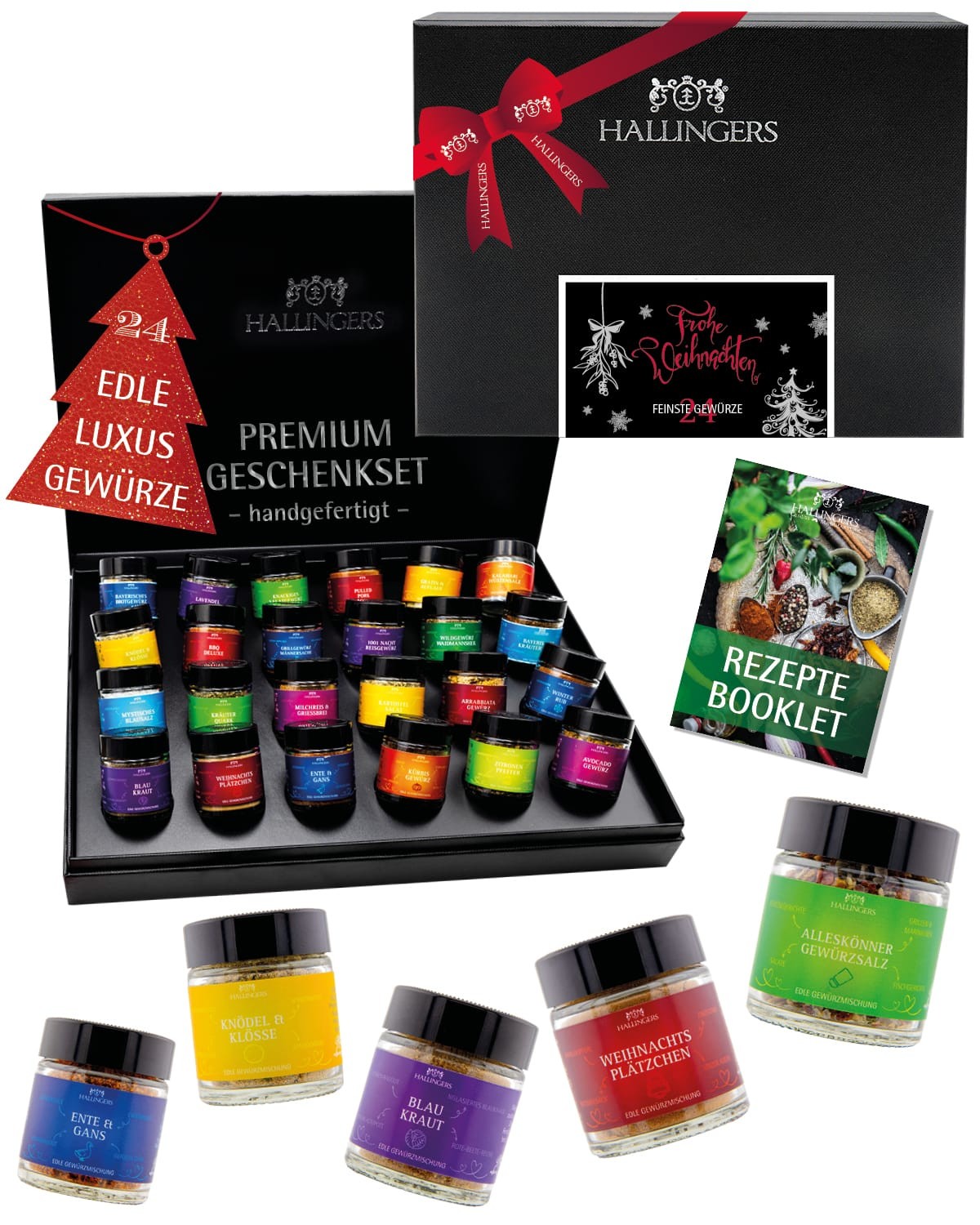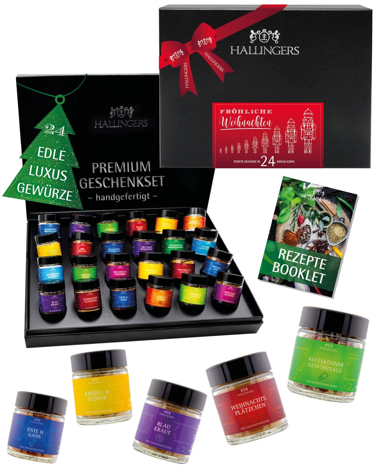Gewürze Geschenkset Weihnachten – 24 Premium Gewürze aus aller Welt im Glas, edle Geschenkbox, Gewürze Set "Frohes Fest", Weihnachts Geschenkidee für
