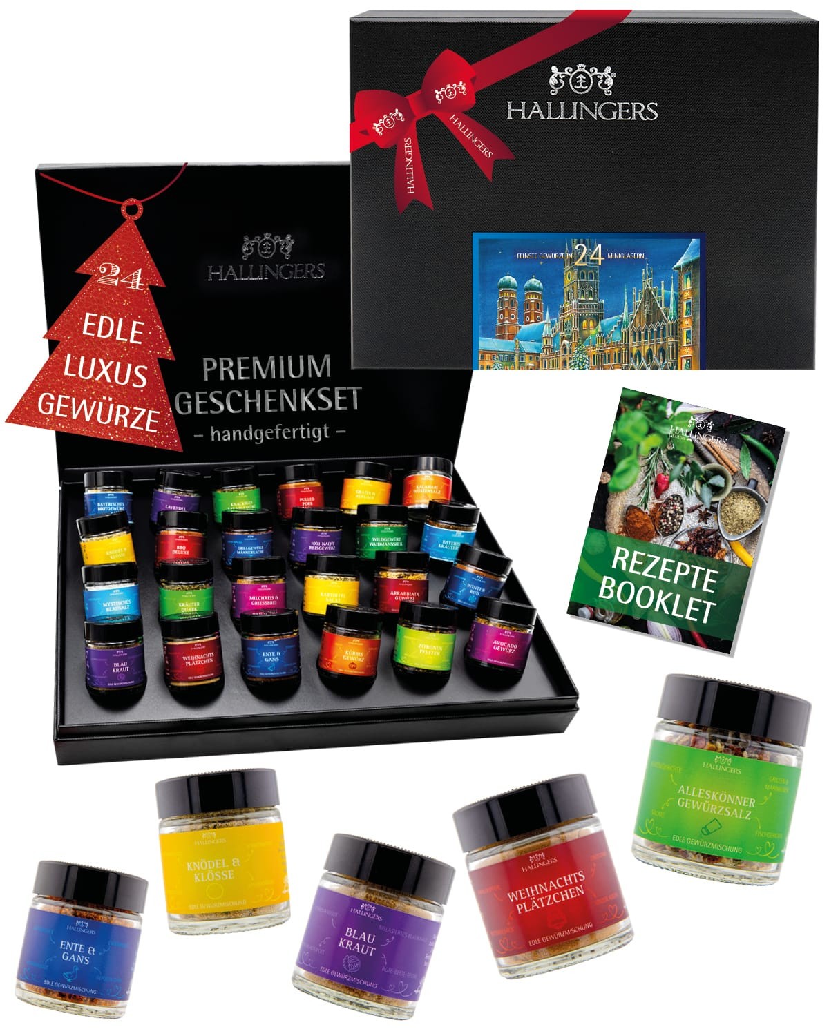 Gewürze Geschenkset Weihnachten – 24 Premium Gewürze aus aller Welt im Glas, edle Geschenkbox, Gewürze Set "Marienplatz", Weihnachts Geschenkidee für