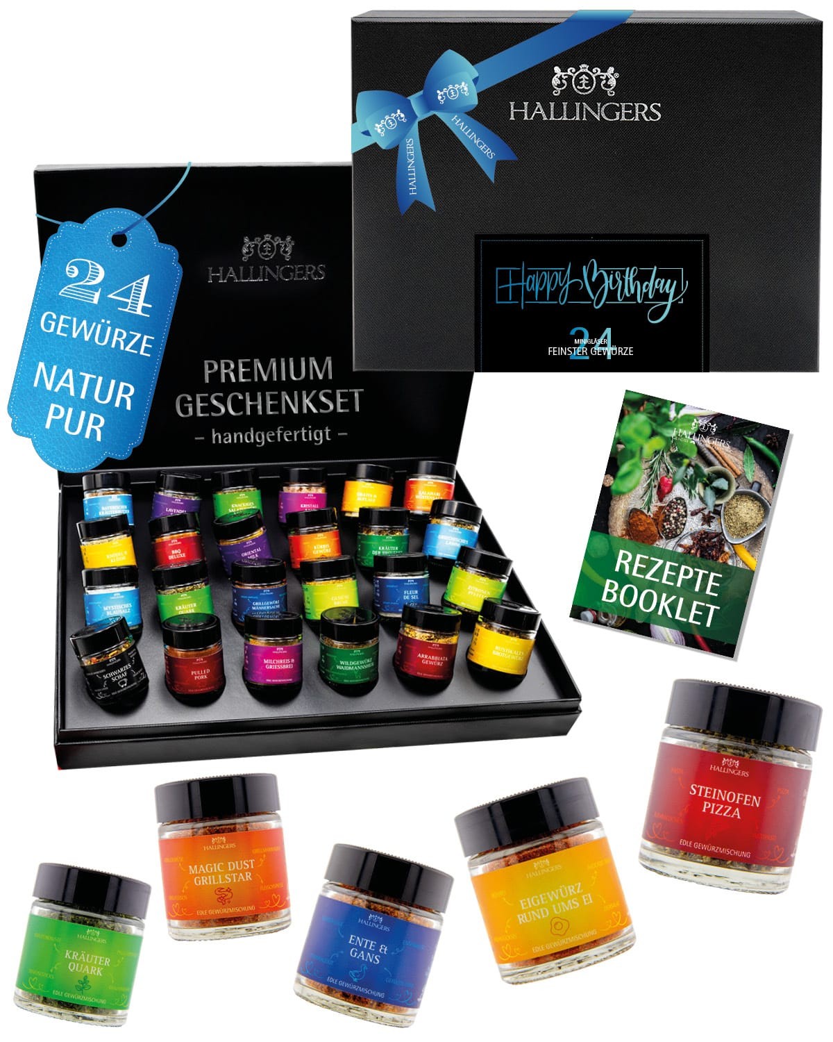 Gewürze Geschenkset Geburtstag – 24 Premium Gewürze aus aller Welt im Glas, edle Geschenkbox, Gewürze Set "Happy Birthday", Geschenkidee für Männer, a