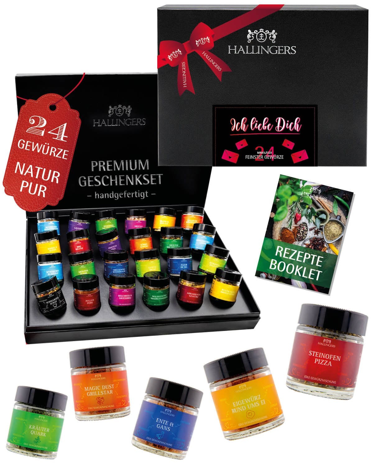 Gewürze Geschenkset Valentinstag – 24 Premium Gewürze aus aller Welt im Glas, edle Geschenkbox, Gewürze Set "Ich liebe Dich", liebe Geschenkidee für s