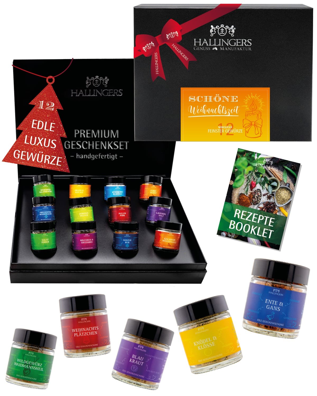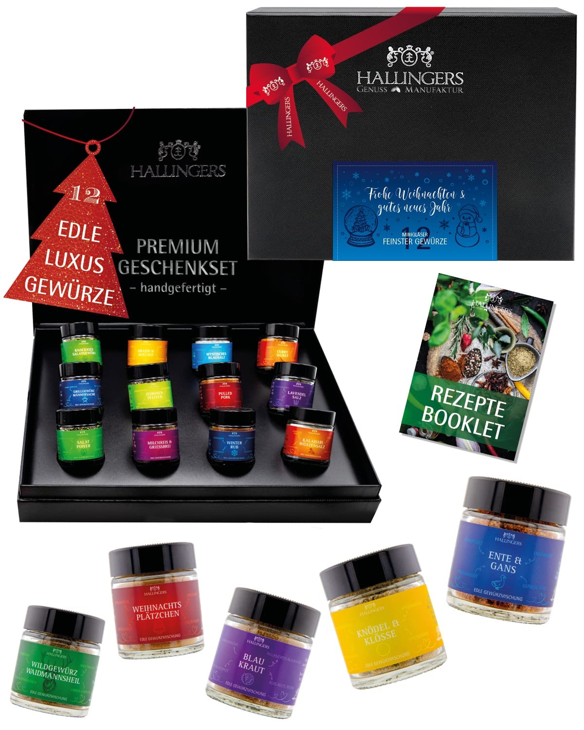 Gewürze Geschenkset Weihnachten – 12 Premium Gewürze aus aller Welt im Glas, edle Geschenkbox, Gewürze Set "Frohe Weihnachten", Weihnachts Geschenkide