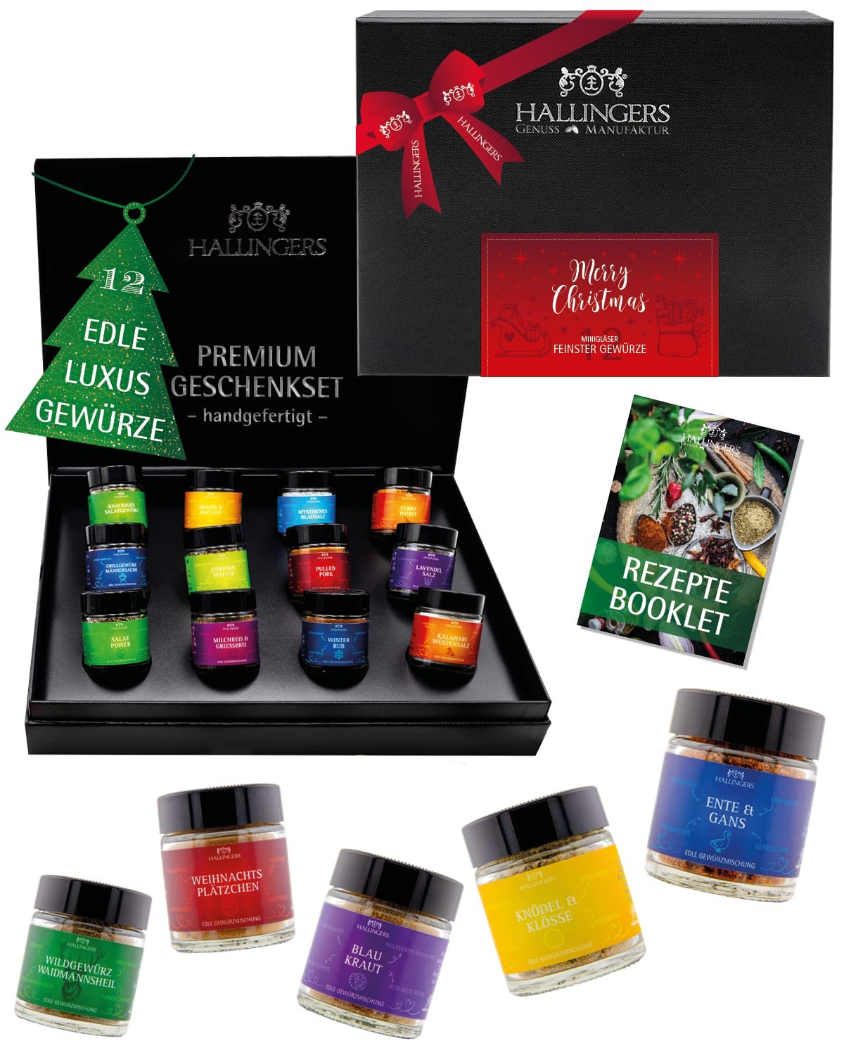 Gewürze Geschenkset Weihnachten – 12 Premium Gewürze aus aller Welt im Glas, edle Geschenkbox, Gewürze Set "Merry Christmas", Weihnachts Geschenkidee
