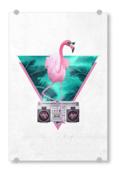 Acrylglasbild "Miami Flamingo" artboxONE - Tiere,Schwarzweiß - Flamingo,Ghettoblaster