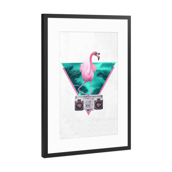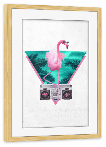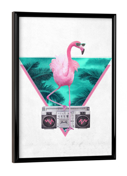 Poster mit Rahmen kiefer "Miami Flamingo" artboxONE - Tiere,Schwarzweiß - Flamingo,Ghettoblaster