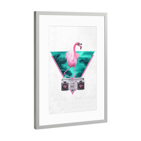 Poster mit Rahmen Silber "Miami Flamingo" artboxONE - Tiere,Schwarzweiß - Flamingo,Ghettoblaster