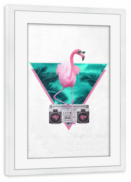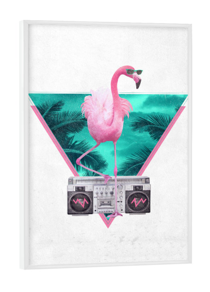 Poster mit Rahmen weiß "Miami Flamingo" artboxONE - Tiere,Schwarzweiß - Flamingo,Ghettoblaster