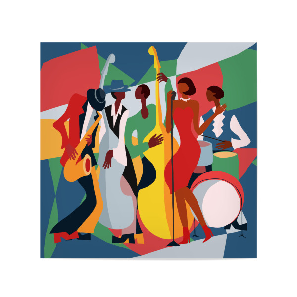 Poster 20x20 cm "Jazz Art" artboxONE - Musik - Jazz,Jazz band,Colorful,Music,Modern home decor,Cubism,Gift idea,Music art,Soul and blues,Red and blue