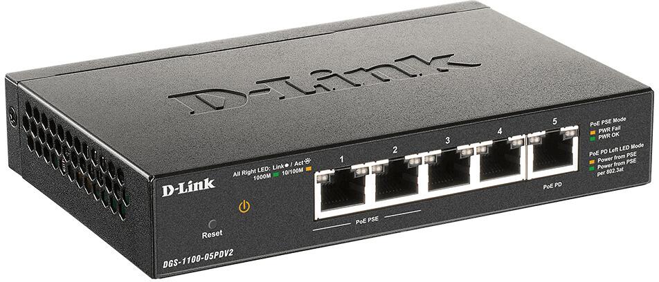 D-Link DGS-1100-05PDV2 5-Port Smart Gigabit Switch PoE-powered PoE