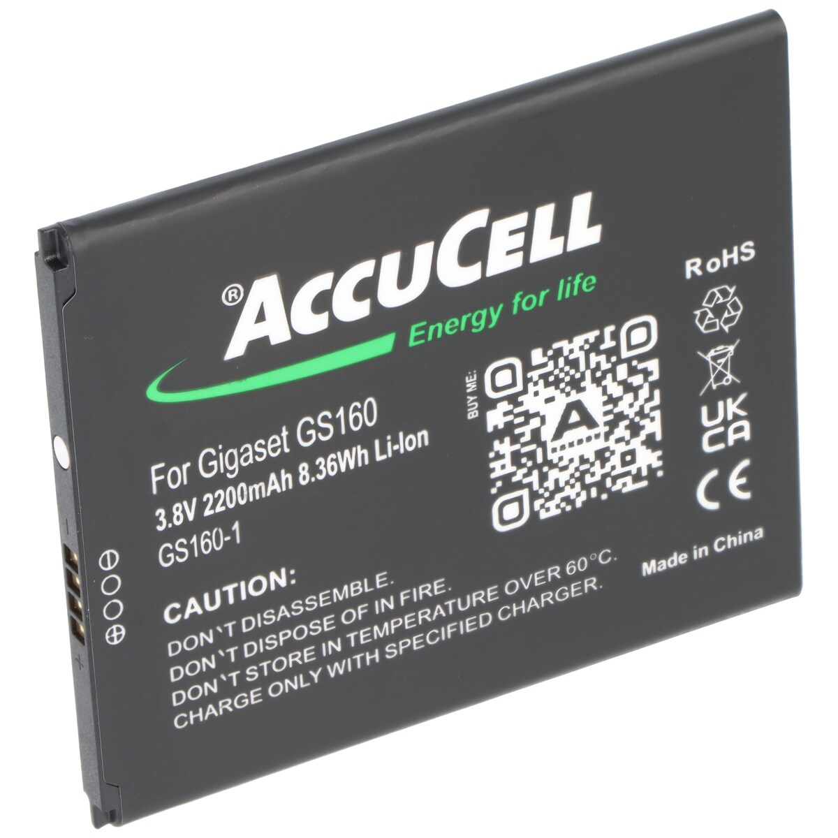AccuCell Akku kompatibel Smartphone Gigaset GS160 Akku V30145-K1310-X463, 3,8V, 2200mAh, max. 8,36Wh
