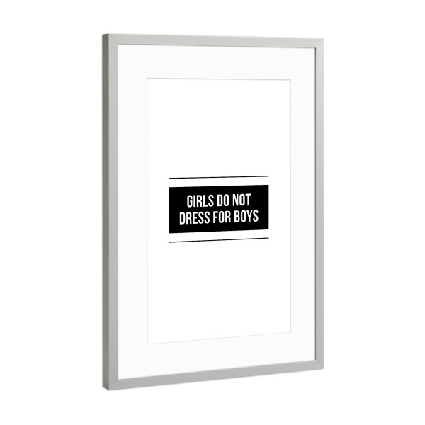 Poster mit Rahmen Silber "Girls Do Not Dress For Boys" artboxONE - Typografie,Schwarzweiß,Fashion