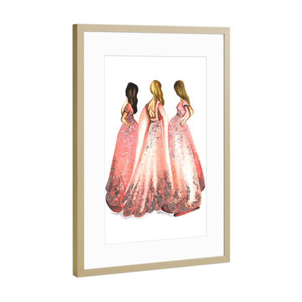 Poster mit Rahmen Gold "Girls in Powder Pink" artboxONE - Fashion - Mode,Mode,Mode illustration,Rosa,Mode kunst,Dress,Kleid