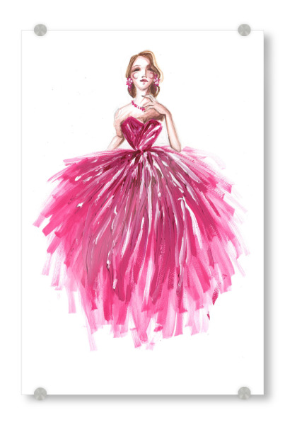 Acrylglasbild "Girl in magenta" artboxONE - Fashion - Rosa,Mode,Mode,Modeillustration,Mode kunst,Modemalerei,Mädchen,Madchen,Dress,Kleid