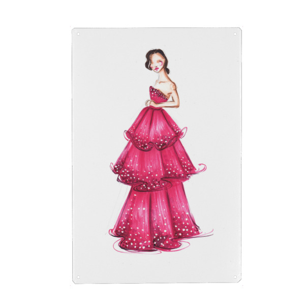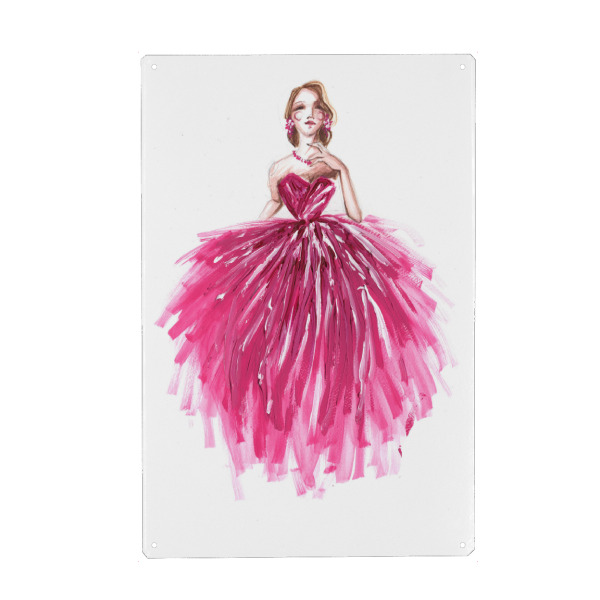 Metall Poster "Girl in Magenta Gown" artboxONE - Fashion - Mode,Mode illustration,Rosa,Mode,Mode kunst,Dress,Kleid - Blechschild