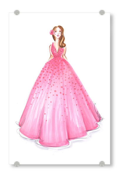 Acrylglasbild "Girl in Pink Dress" artboxONE - Fashion - Mode,Mode,Mode illustration,Rosa,Madchen,Mädchen,Dress,Kleid