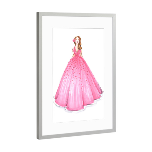 Poster mit Rahmen Silber "Girl in Pink Dress" artboxONE - Fashion - Mode,Mode,Mode illustration,Rosa,Madchen,Mädchen,Dress,Kleid