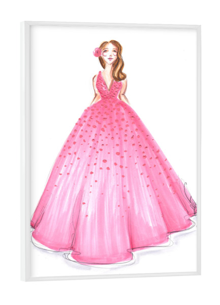 Poster mit weißem Rahmen "Girl in Pink Dress" artboxONE - Fashion - Mode,Mode,Mode illustration,Rosa,Madchen,Mädchen,Dress,Kleid