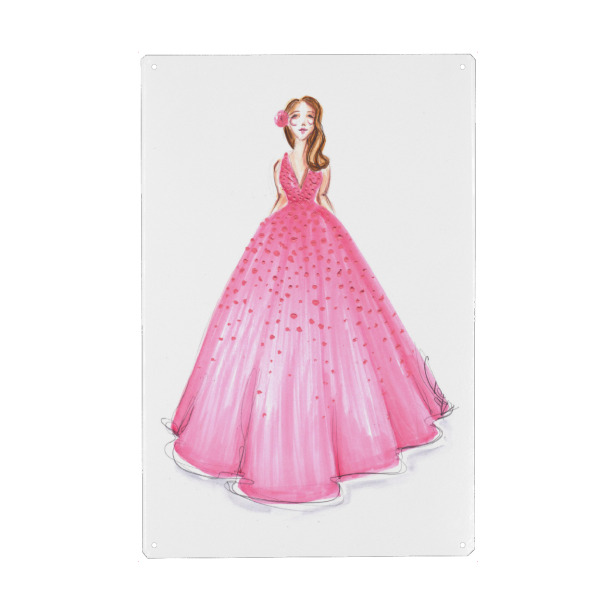 Metall Poster "Girl in Pink Dress" artboxONE - Fashion - Mode,Mode,Mode illustration,Rosa,Madchen,Mädchen,Dress,Kleid - Blechschild