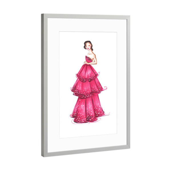 Poster mit Rahmen Silber "Girl in Magenta Gown" artboxONE - Fashion - Mode,Mode illustration,Rosa,Mode,Mode kunst,Dress,Kleid
