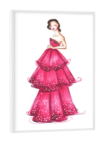 Poster mit weißem Rahmen "Girl in Magenta Gown" artboxONE - Fashion - Mode,Mode illustration,Rosa,Mode,Mode kunst,Dress,Kleid