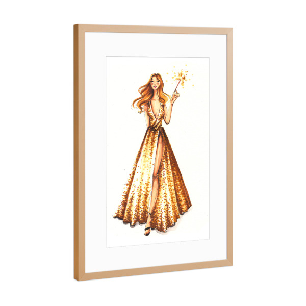 Poster mit Rahmen Kupfer "Party Girl with Sparkler" artboxONE - Fashion - Fashion,Fashion illustration,Girl,Dress