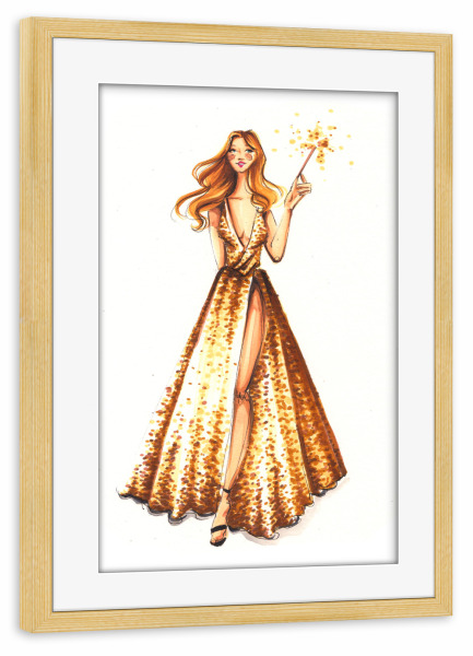 Poster mit Rahmen kiefer "Party Girl with Sparkler" artboxONE - Fashion - Fashion,Fashion illustration,Girl,Dress