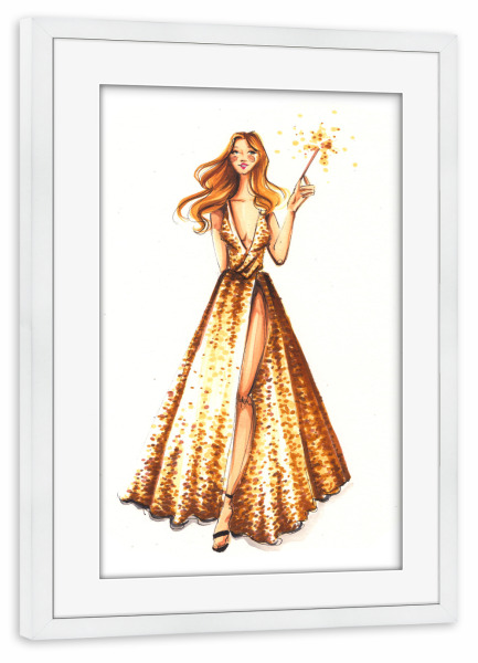 Poster mit Rahmen weiß "Party Girl with Sparkler" artboxONE - Fashion - Fashion,Fashion illustration,Girl,Dress