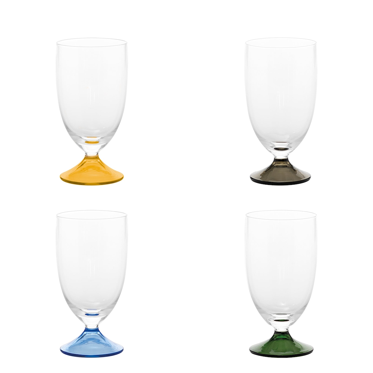 Zafferano Maestro Gläser-Set, 4-teilig, mundgeblasen, venezianisches Design, stielos, verschiedene Farben: Grau, Goldgelb, Grün und Hellblau.