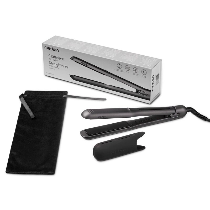 MEDION Glätteisen HS2 (kabellos, Display, 5 regelbare Hitzestufen, 165° bis 210°, breite flexible Keramik - Turmalin Heizplatten, Silikon Schutz...