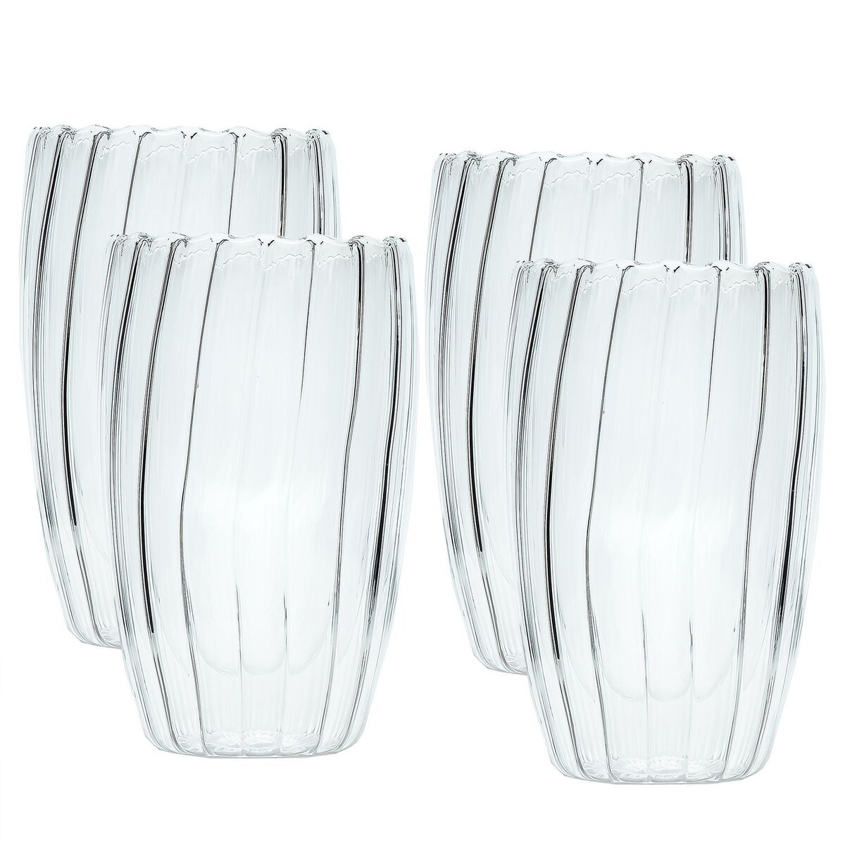 Intirilife 4x Doppelwandiges Thermo Glas - Rillen Style - 190ml - Mundgeblasen isoliert für Latte Macchiato, als Teeglas oder Kaffeeglas mit Henkel